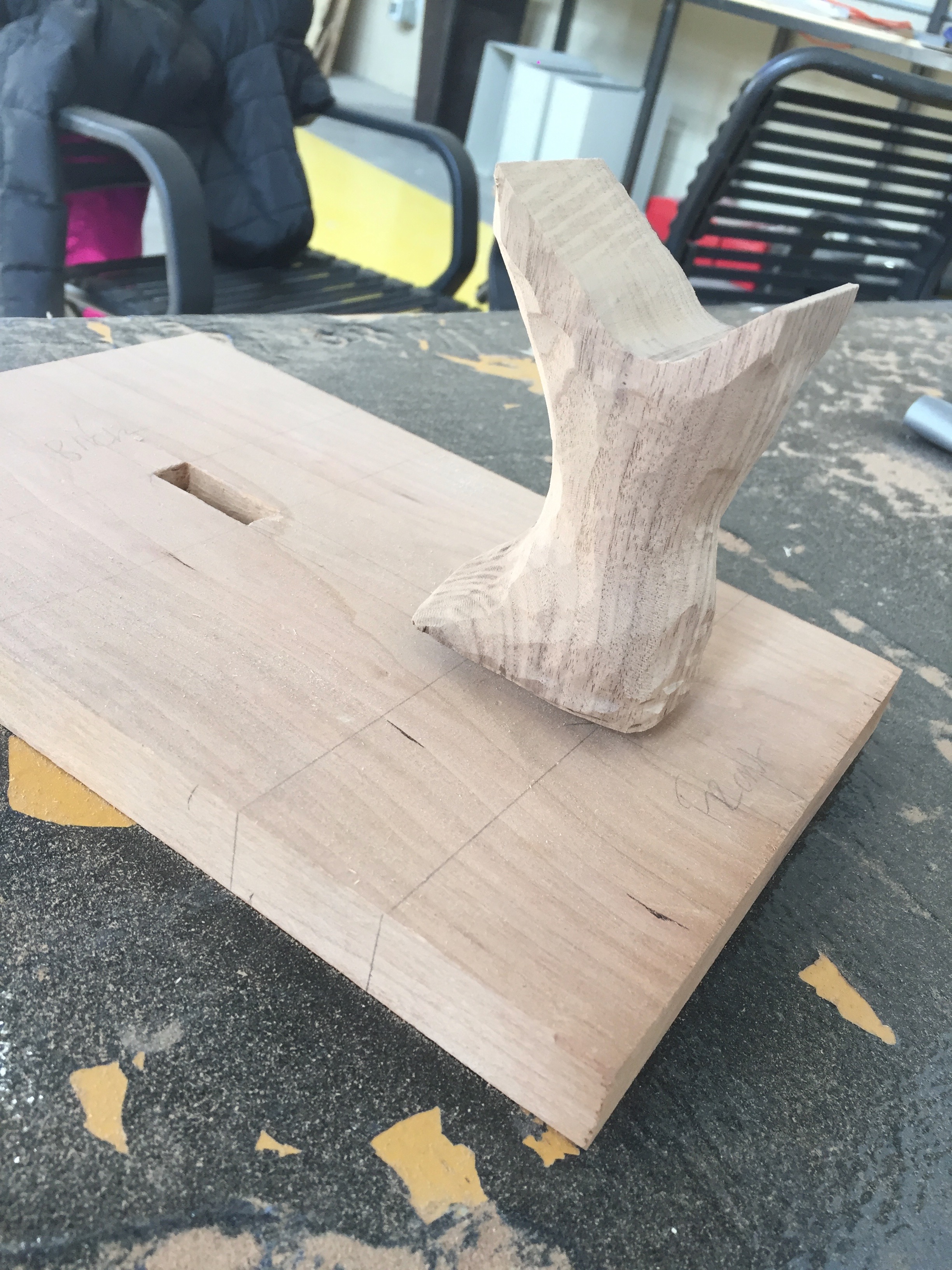 the arms extruding from the board were carved with the band saw and angle grinder and sanded down to create the smooth texture.